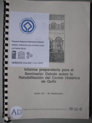 A.1.27 Informe Preparatorio para el Seminario/Debate sobre la Rehabilitación del Centro Histórico de Quito (Ver A.1.24)